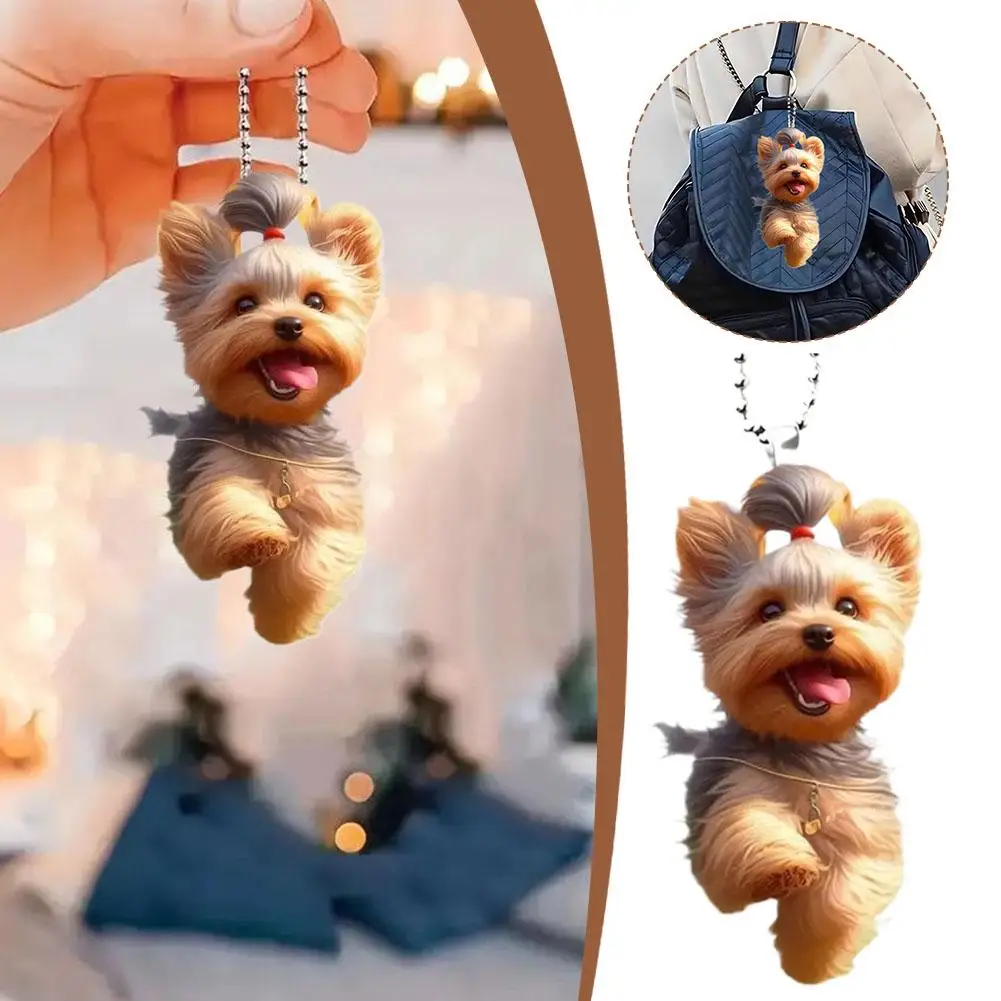 Yorkshire Terrier Dog Acrylic Pendant Versatile Charm Cute Puppy Keychain Car Mirrors Backpacks Home, Festive Party Decor