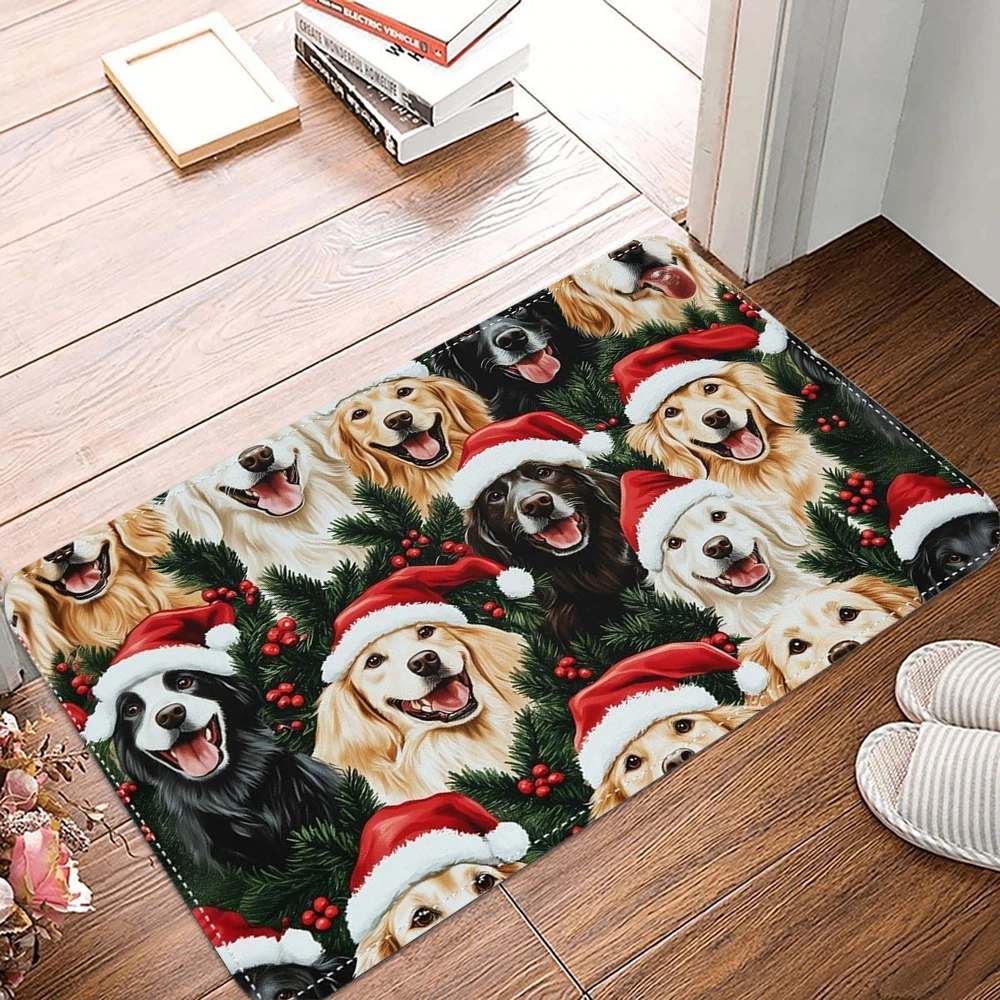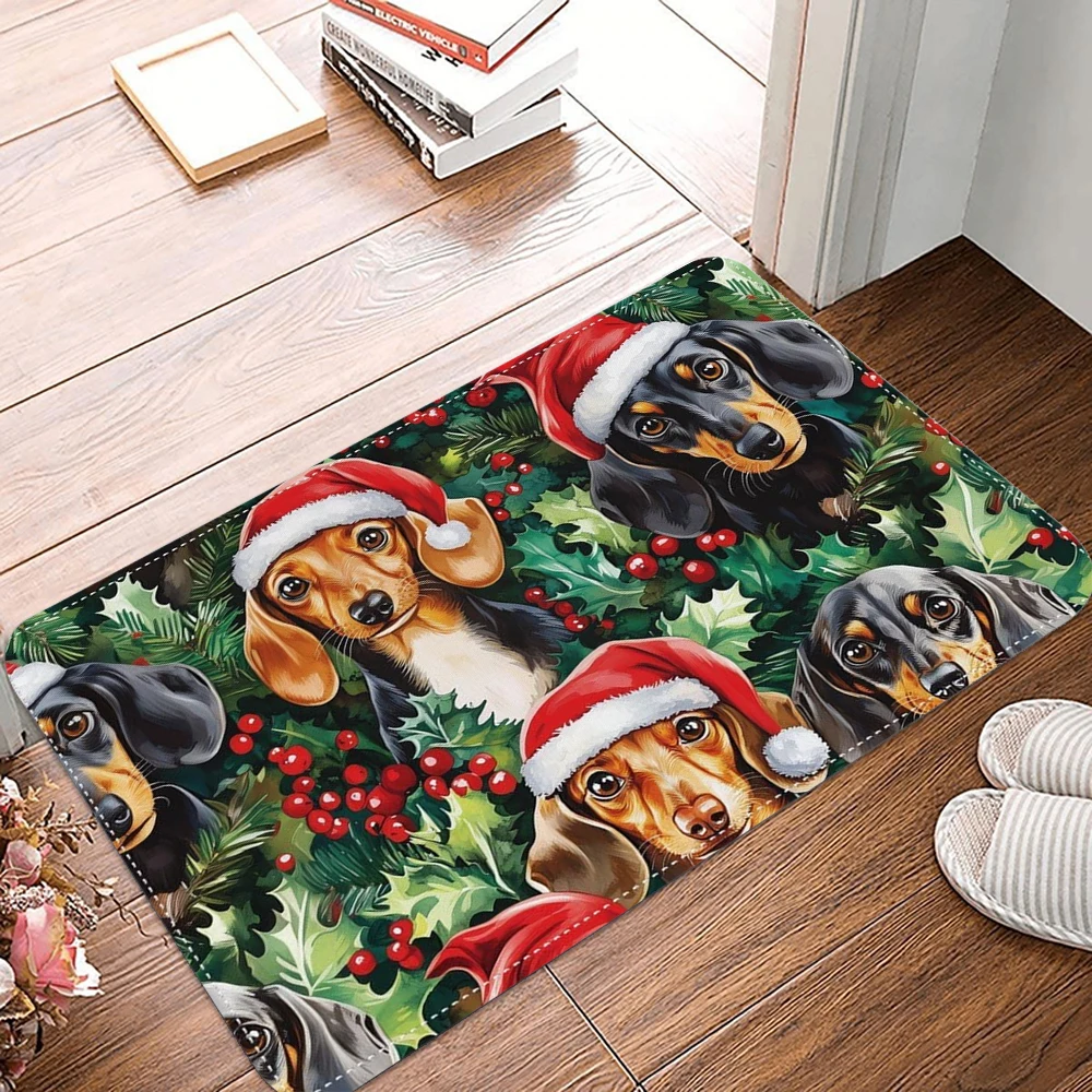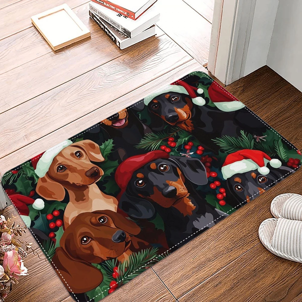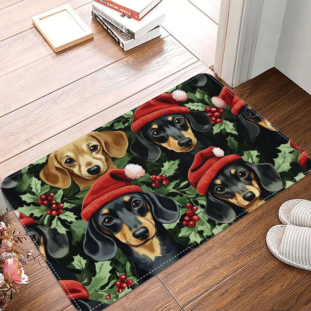 Christmas Dogs Print Doormat Anti-slip Carpet for Kitchen Living Room Machine Floor Mat Washable Rug