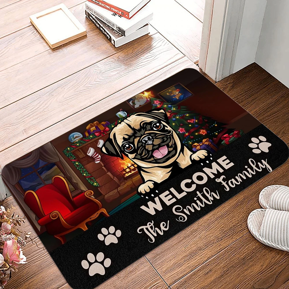 Christmas Dogs Welcome Door Mat Polyester Indoor Outdoor Rugs Home Decor Carpet