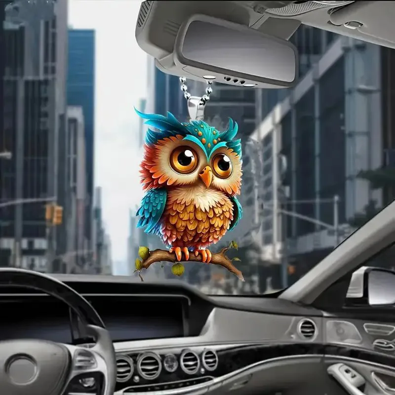 Cute squirrel, owl, Cat-Shaped Rear View Mirror Pendant Auto Interior Car Realistic Animal Hanging Ornament Car Interior Decoration